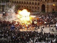 ЧП произошло на площади Республики. По данным МЧС, 154 человека, в том числе дети, получили ожоги и были госпитализированы. Погибших в результате взрыва нет. В настоящее время в больницах остаются 76 человек.